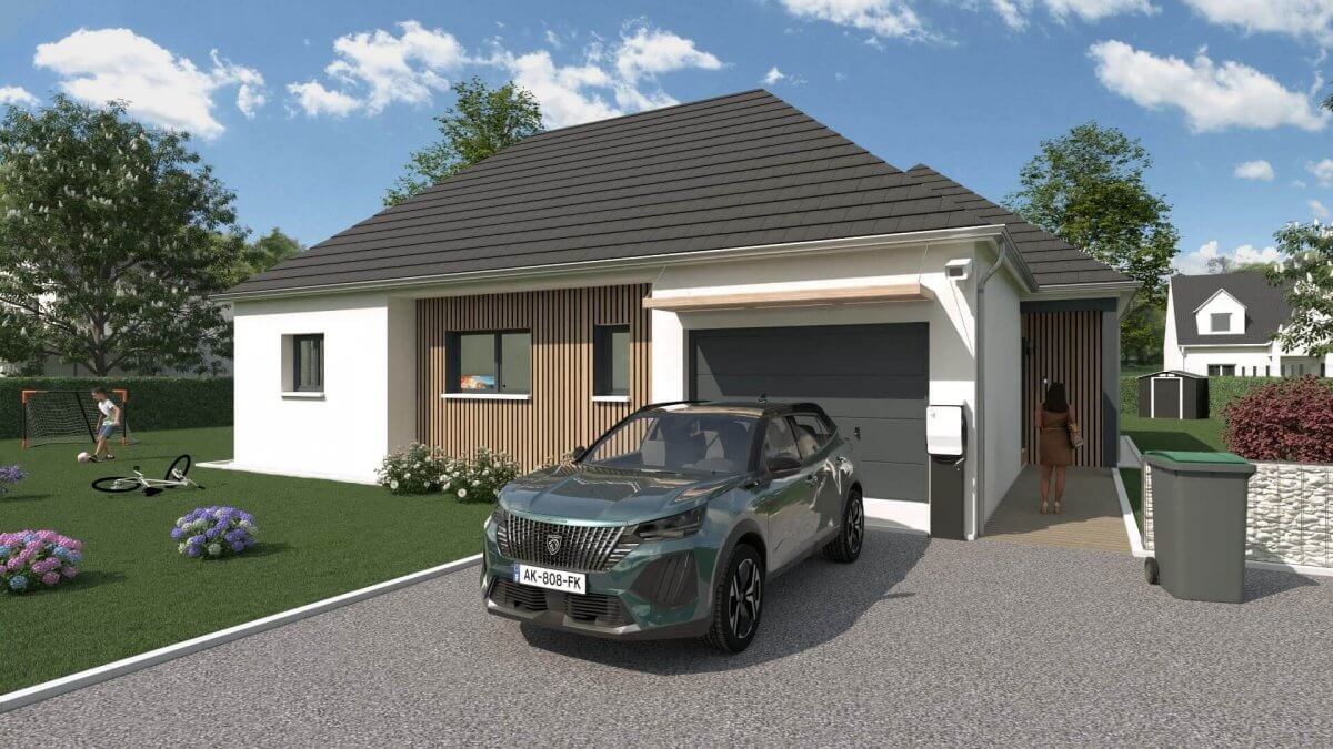 OYAT est une maison ossature bois de plain-pied jusqu'à 5 chambres à l'architecture originale et à forte présence. Dans sa version toiture tuile, elle s'intégrera harmonieusement dans tous les environnements. Mais elle peut aussi être déclinée dans sa version toiture-terrasse, résolument moderne.
